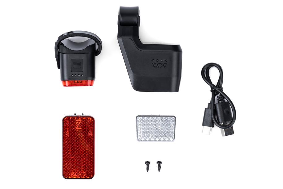 - Features: Inhalt: ACID Frontlicht PRO 20 CMPT + ACID Rücklicht PRO CMPT; StVZO zugelassen; 20 Lux; inkl. weißer K-Reflektor, roter Z-Reflektor; inkl. USB-C-Ladekabel; Schutzklasse IPX5
