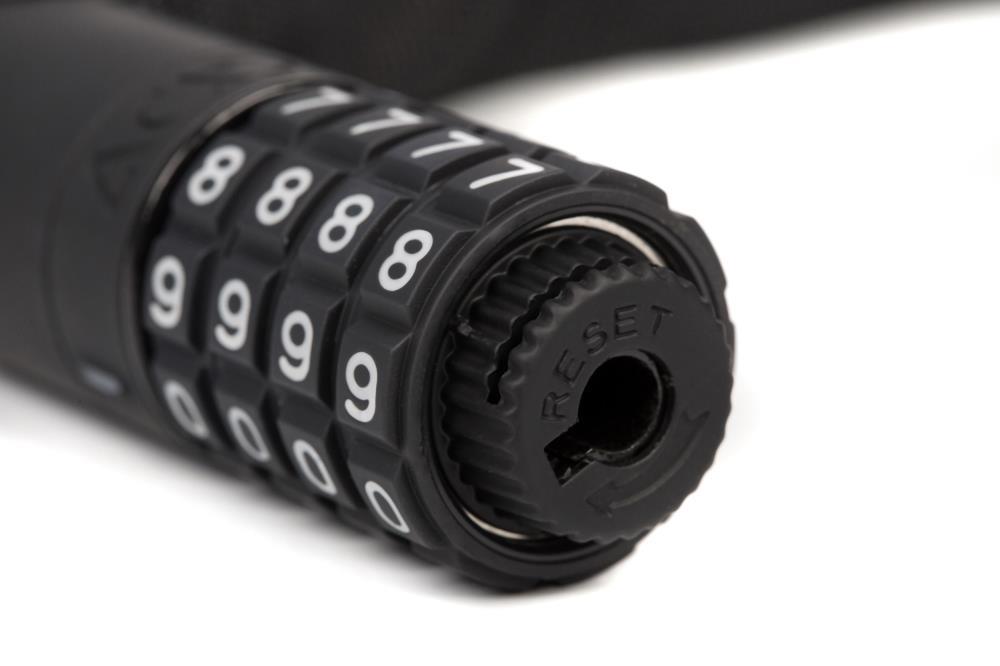 - Features: extra sicheres Kettenschloss; GRIP+ vollständig gummierte Oberflächen; geräuscharm; Kette und Schlosskörper korrosionsgeschützt; Kunststoffcover schützen den Rahmen vor Kratzern; geprüft auf mechanische Festigkeit; schadstoffarm zertifiziert; frei einstellbarer Zahlencode